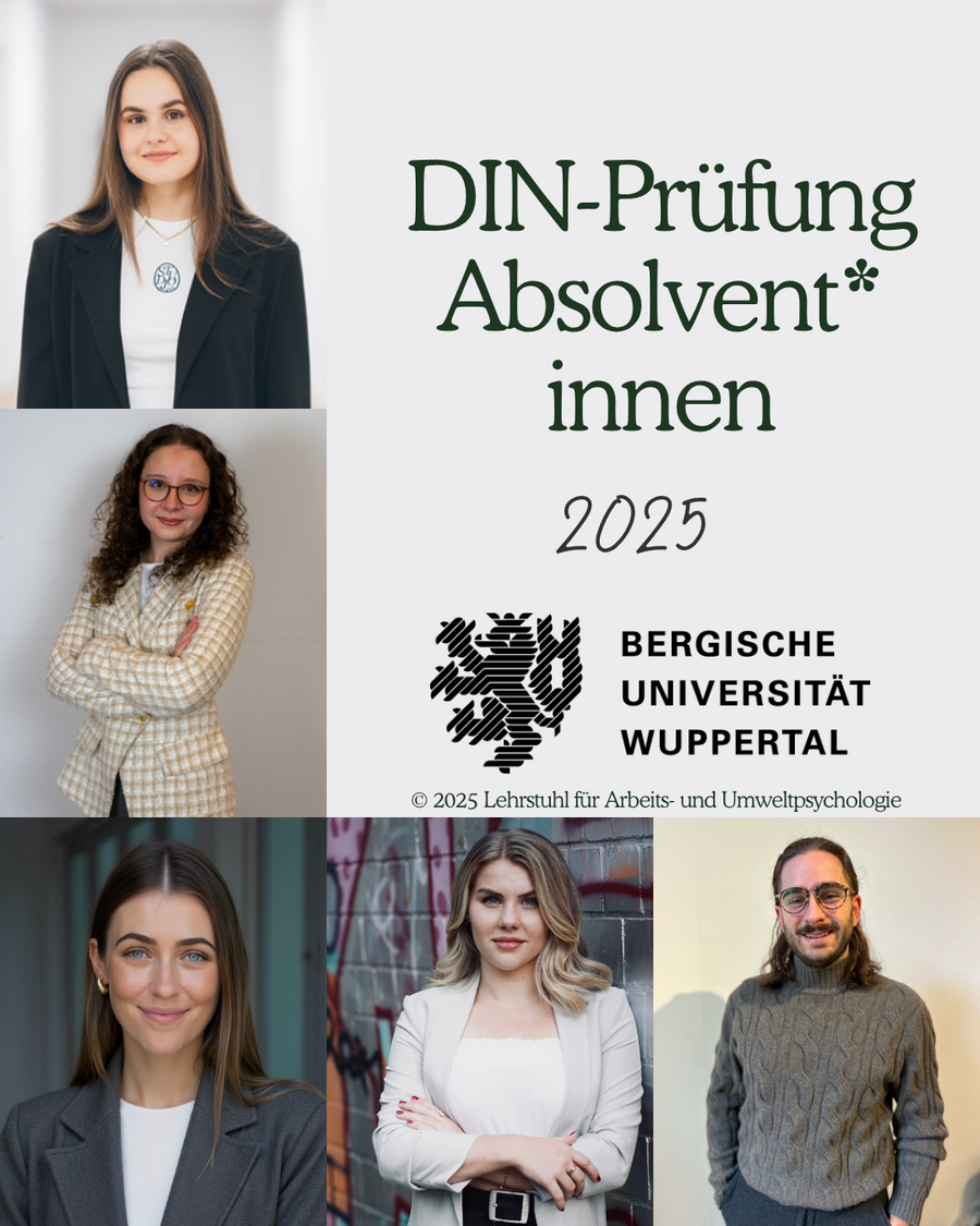 Die ersten Studierenden absolvierten erfolgreich die Lizenz E nach DIN 33430 an unserem Lehrstuhl für Arbeits- und Umweltpsychologie an der Bergischen Uni Wuppertal. Herzlichen Glückwunsch an alle Absolvent*innen!