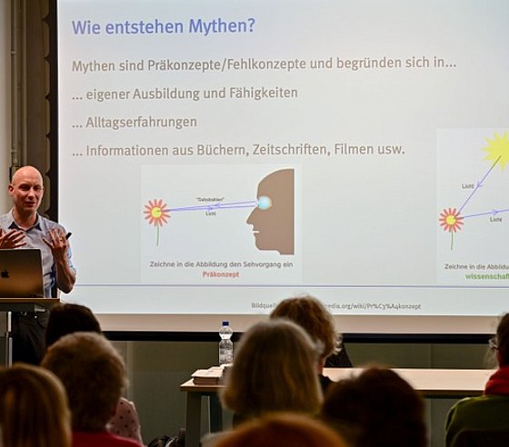 Professor Meinald Thielsch hielt im Zuge der Veranstaltung vor rund 50 interessierten Personen einen Vortrag über die Entstehung von Mythen und die Herausforderungen beim Transfer wissenschaftlicher Erkenntnis in die Praxis.